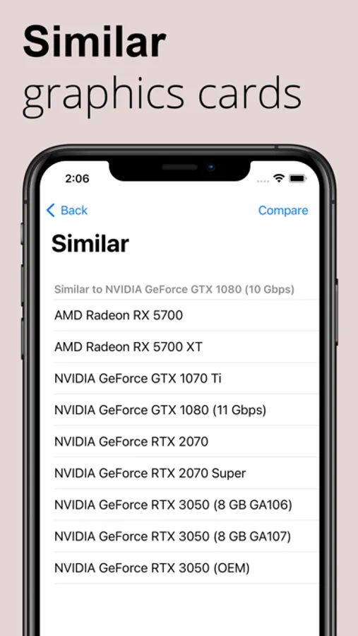 • Similar graphics cards. Shows graphics cards similar to the selected one