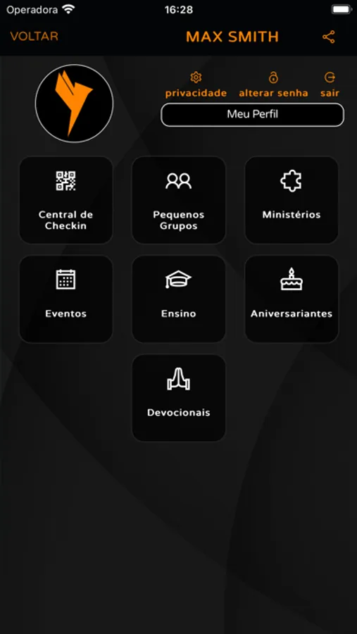 * No item Meu Perfil é possível atualizar seus dados cadastrais na Igreja;