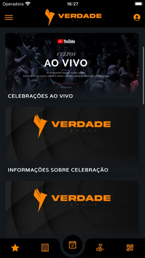 * Conteúdos (Áudio/Vídeo): Permite visualizar e ouvir os conteúdos da Igreja disponíveis no App;