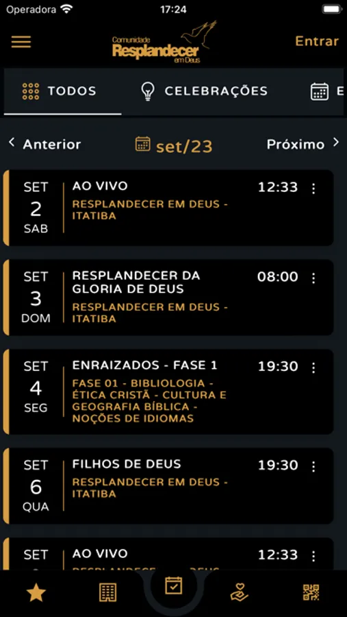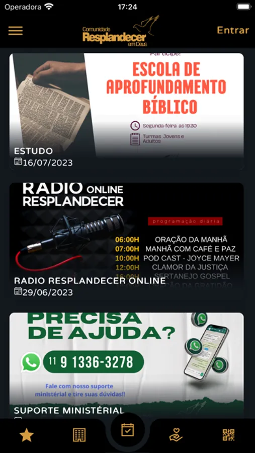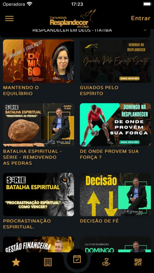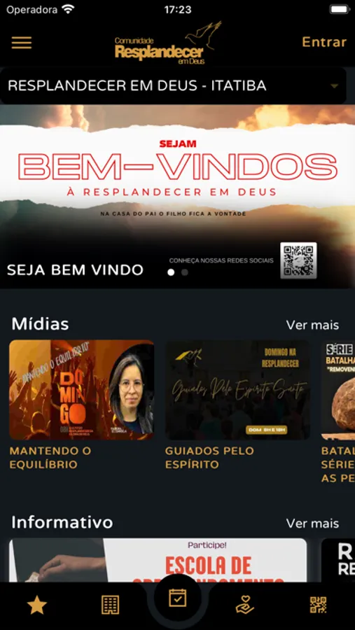 * Conteúdos (Áudio/Vídeo): Permite visualizar e ouvir os conteúdos da Igreja disponíveis no App;