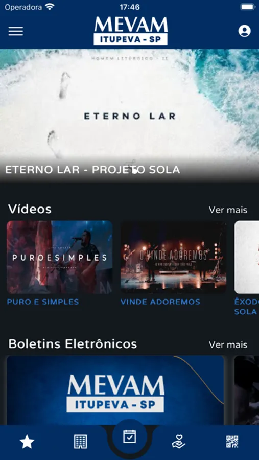 Conteúdos (Áudio/Vídeo): Permite visualizar e ouvir os conteúdos da Igreja disponíveis no App;