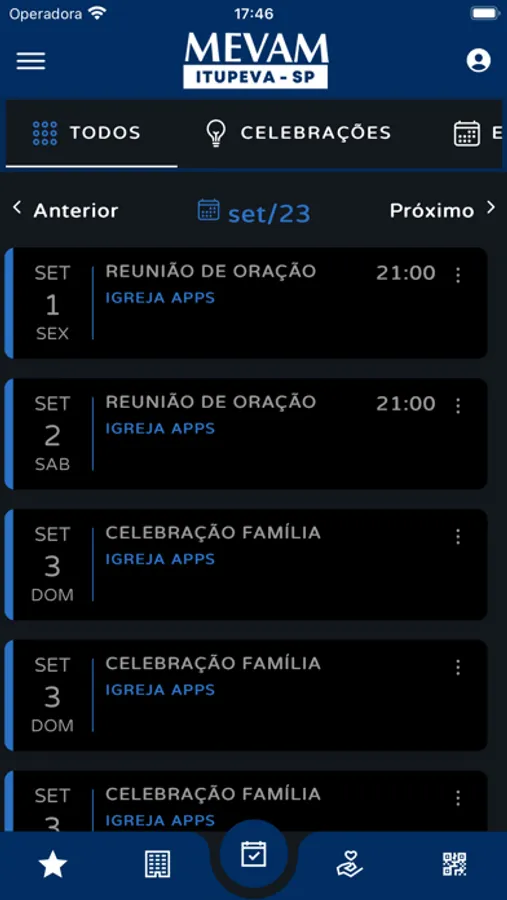 Através do App você pode realizar várias atividades para se relacionar com a Igreja, como: