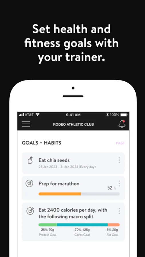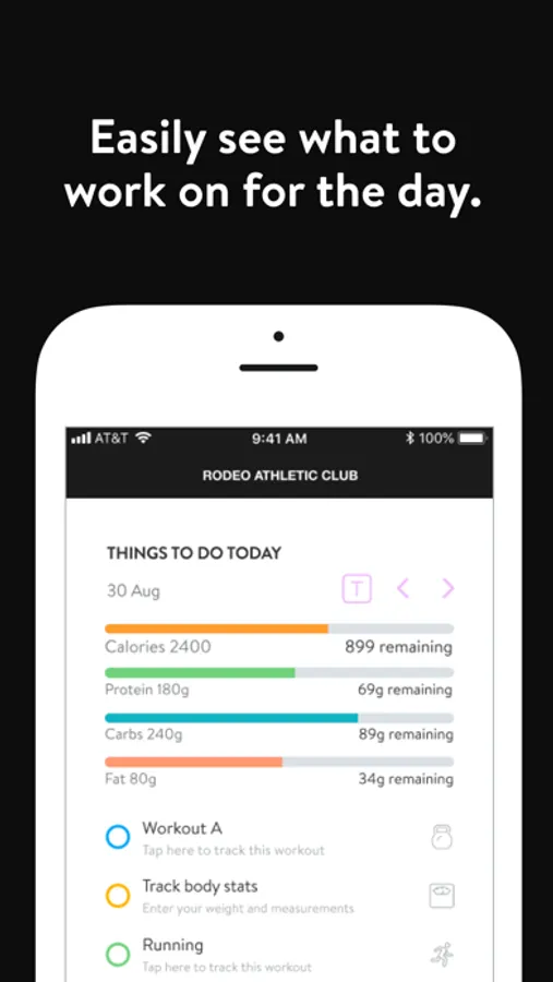 With the Rodeo Athletic Club Coach App, you will have access to all the programming we have to offer! You can follow & track your workouts, your nutrition, your lifestyle habits, measurements and results–all with the help of your coach.