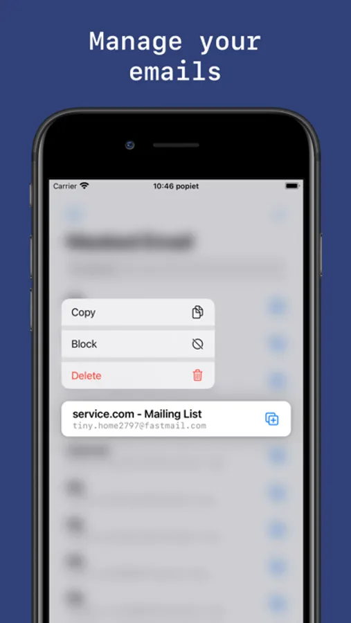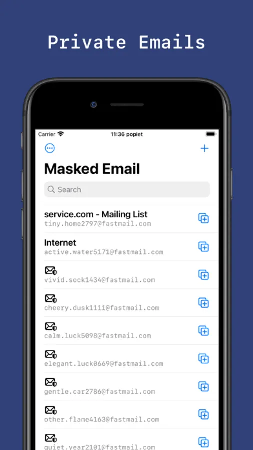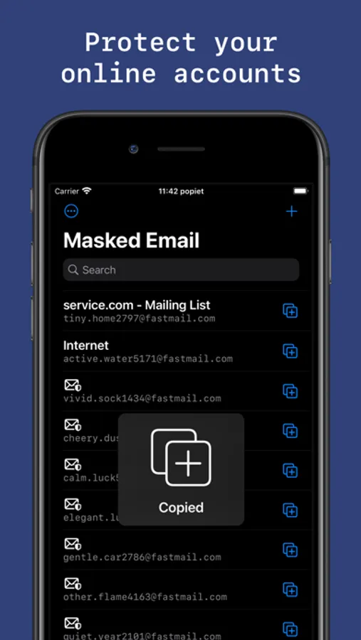 • Efficient Copying: Copy your masked email addresses with ease, simplifying their integration into online forms, registrations, and confidential correspondence.