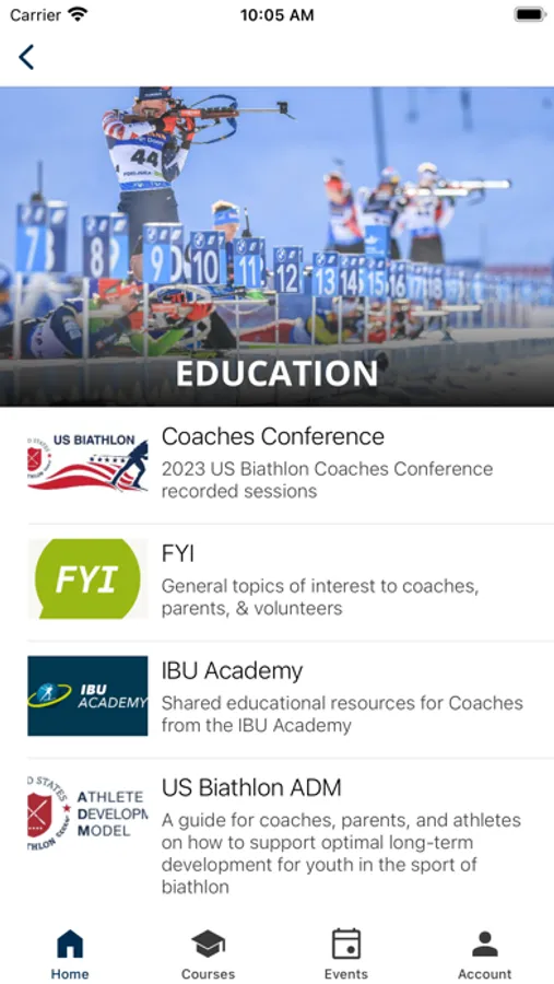 The US Biathlon Center app will serve as a location for US Biathlon member Coaches, Officials, athletes, parents, and other constituents to come for information and education. US Biathlon will offer educational modules in this app which are aimed to benefit all members looking to raise their level of education in Biathlon, and will be able to communicate with members when new information and modules of interest become available.