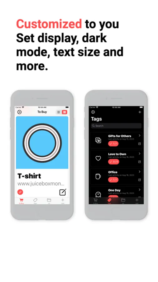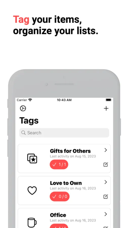 - Tag Purchased Tracking: Track items inside specific tags and how far along you are in purchasing the list.