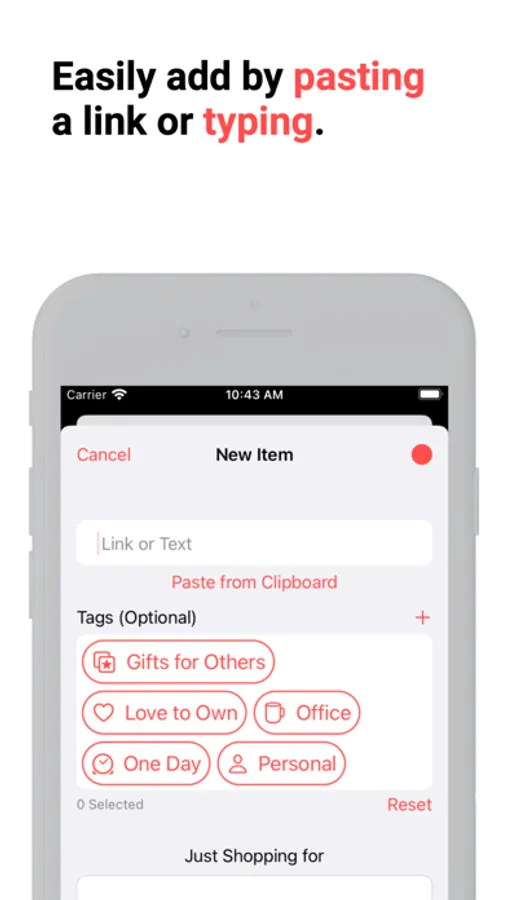 - Tag Support: When adding items you can tag them to specific groups to keep all your items neatly in the correct lists.