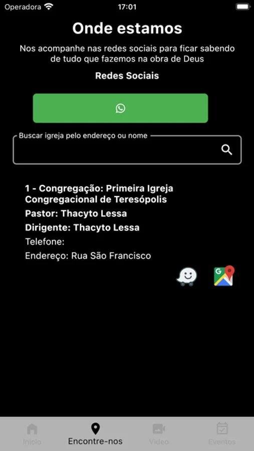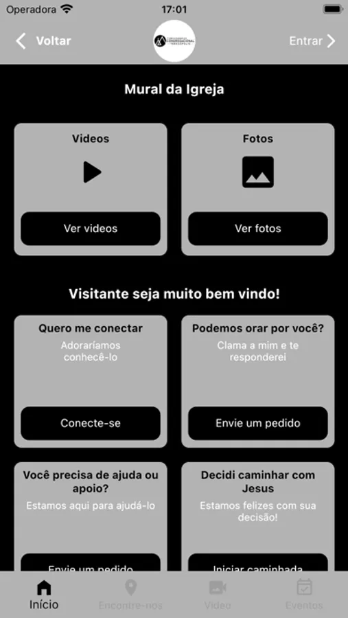 - Mural da igreja com as notícias e ações da igreja local com fotos e vídeos;