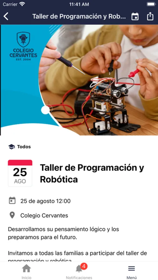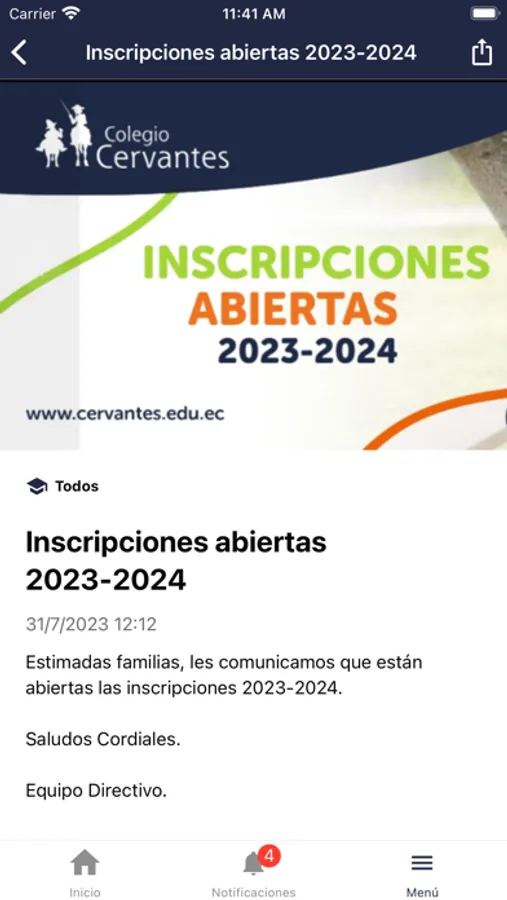 Esta app es una herramienta que te permite estar conectado con la actividad del Colegio Cervantes