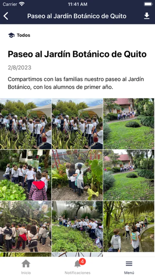 Recibe al instante los mensajes y anuncios del colegio en tu pantalla mediante notificaciones push. Accede a datos sobre eventos, actividades y competencias deportivas. Visualiza imágenes y vídeos de tus hijos, así como también recibe documentos y otros recursos adicionales.