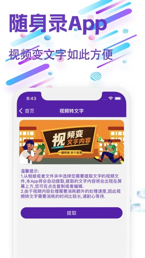 4、视频转文字:选择您文件中的视频文件,直接输出视频中的文字内容,让您追剧或者工作更加方便、提效;