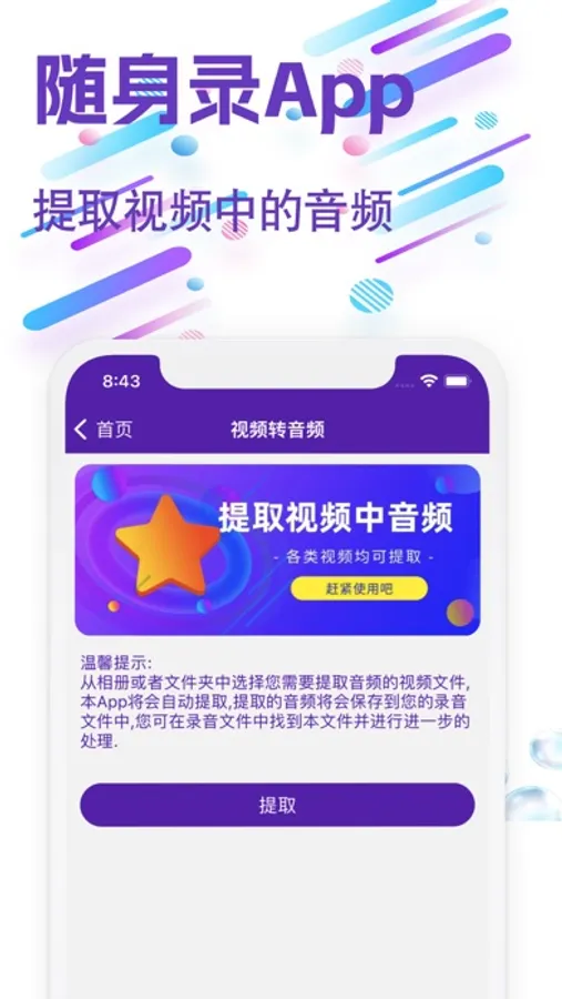 5、音频提取:提取您视频中的音频文件,做到音视频分离;