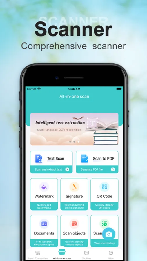 Scan Translation is an application platform that combines omnipotent scanning and intelligent translation. We break away from a single functional convention and integrate translation and scanning functions, adhering to the characteristics of multiple and comprehensive functions related to users' work and life, effectively bringing infinite convenience to users.