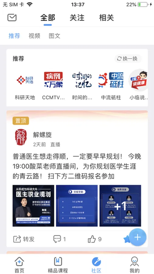 -「医学社区」:病例交流、值夜班、求职招聘各类话题社区讨论。