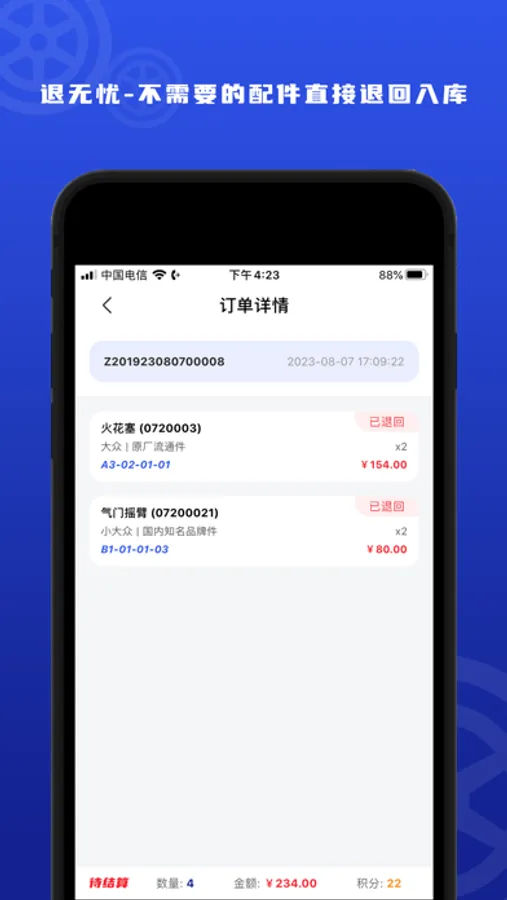 供应商为修理厂设置智库后,修理厂可在专属的智库中选择配件出库使用,