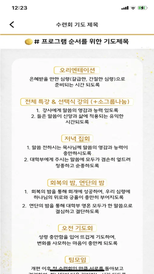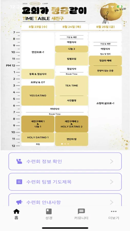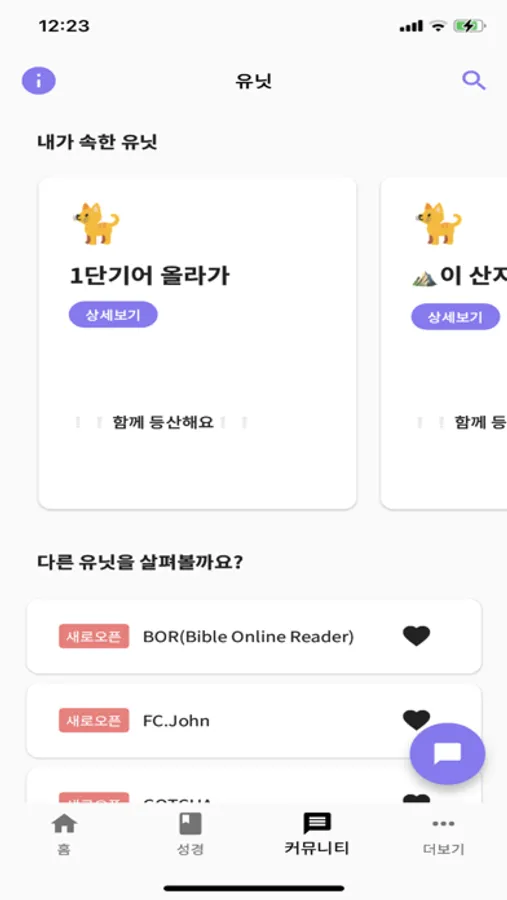 대학부 공지사항, 수련회 등록, 유닛 활동 등 다양한 컨텐츠가 있습니다.