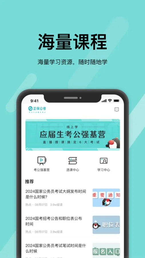 海量内容:为用户提供海量的内容,从专题讲座、知识点讲解、申论热点,应有尽有,适应您在多场景下的学习需求。