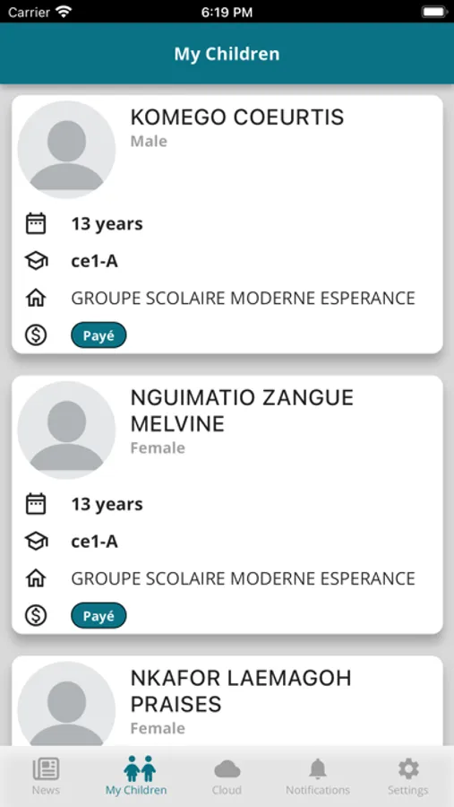 Seku est une application qui permet aux différents tuteurs de suivre leurs différents enfants