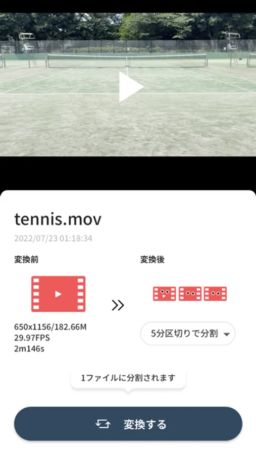 簡単に動画を2分または5分刻みに分割できるアプリです。SNSでの共有に便利です。