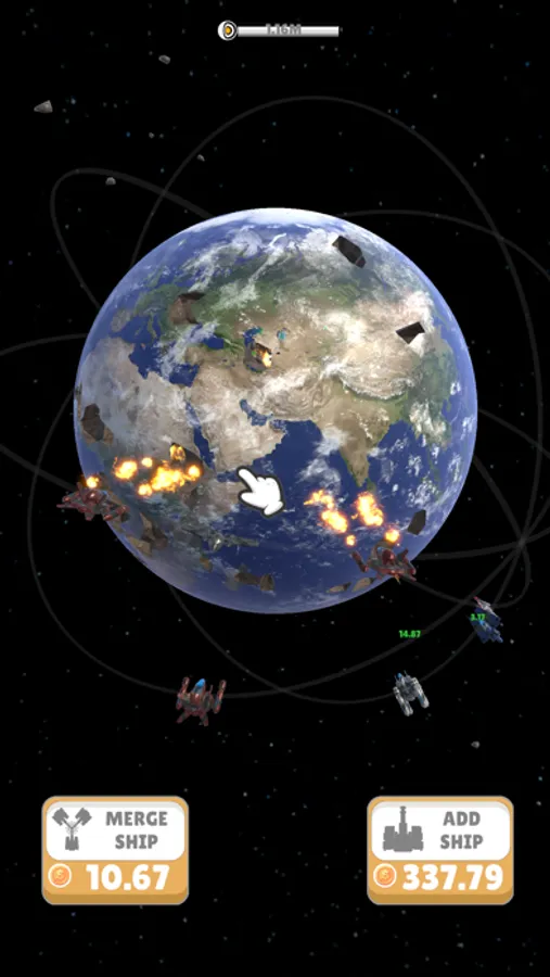 Merge two space ships of the same level to create a more powerful one. The higher the level, the more damage your space ship can do.