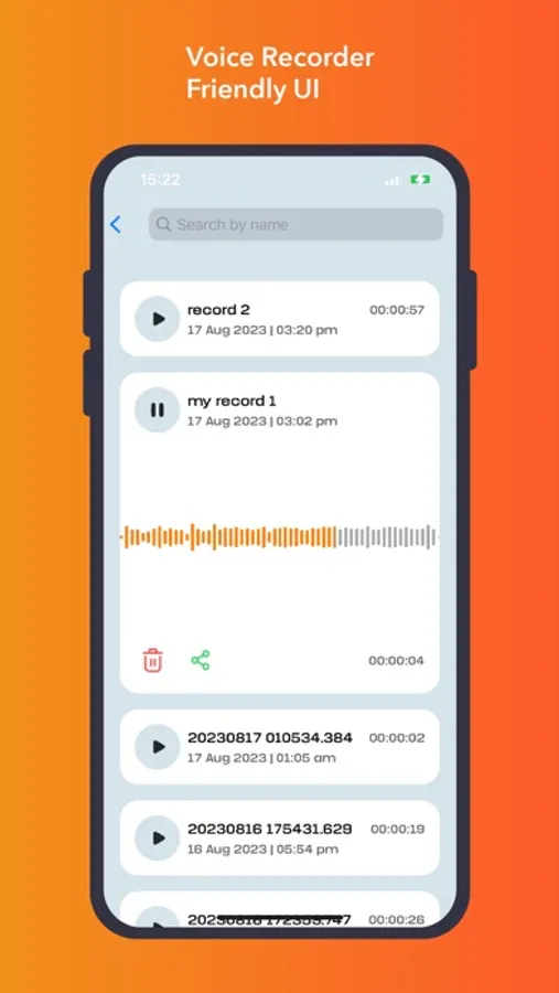 - Simple and easy-to-use interface: Voice Recorder has a simple and easy-to-use interface that makes it easy to record and playback audio recordings. Just tap the record button to start recording, and tap the V button to stop recording and auto save. You will see the list of records in other screens.