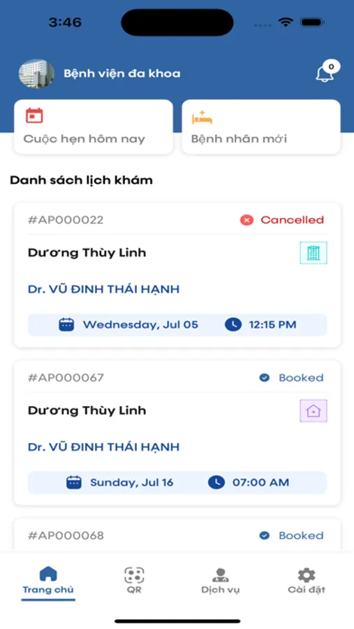 - See all appointments of your hospital