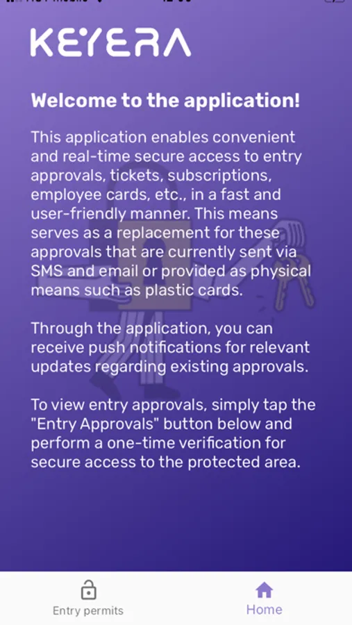 This application enables convenient and real-time secure access to entry approvals, tickets, subscriptions, employee cards, etc., in a fast and user-friendly manner. This means serves as a replacement for these approvals that are currently sent via SMS and email or provided as physical means such as plastic cards. Through the application, you can receive push notifications for relevant updates regarding existing approvals. To view entry approvals, simply tap the "Entry Approvals" button below and perform a one-time verification for secure access to the protected area.