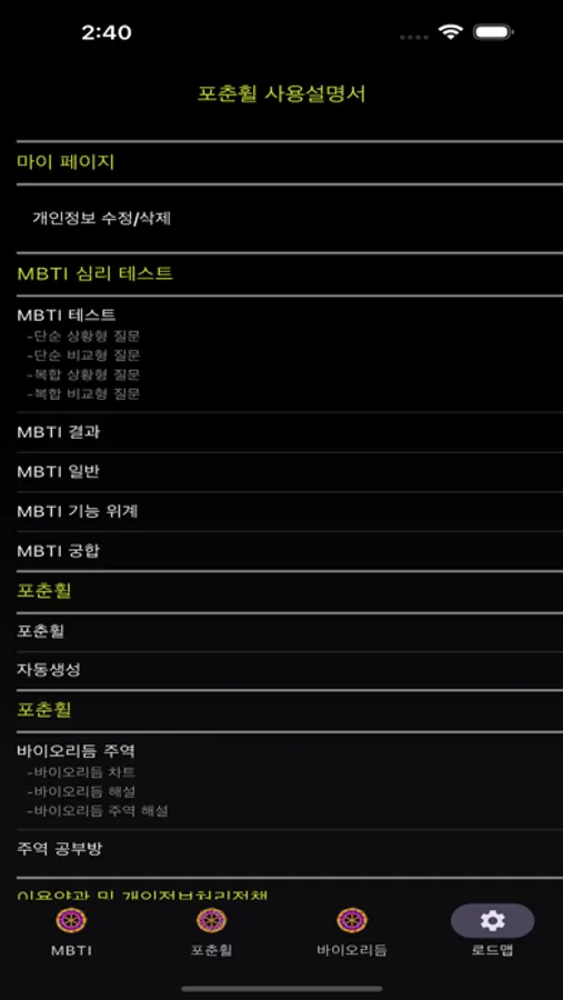 포춘휠은 심층 심리 검사를 통해 가면 속에 숨겨진 참 나의 성격과 적성을 분석합니다. 이를 바탕으로 직업선택과 자신이 처한 갈등적 상황을 점검할 수 있는 심층 mbti와 각 개인의 신체 감정 지성 바이오리듬의 상호작용과 인과관계를 확인해 볼 수 있습니다. 또한 바이오리듬 정보 입력 사항인 좋아하는 활동, 색, 숫자와 mbti 분석 결과의 차이를 통해 숨겨져 있는 자신의 무의식 성향과 차이를 살펴볼 것입니다.