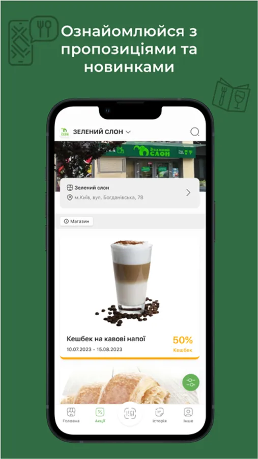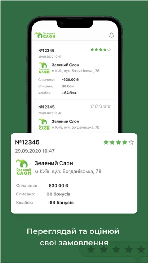 By downloading Зелений Слон, you become a part of a unique loyalty program.