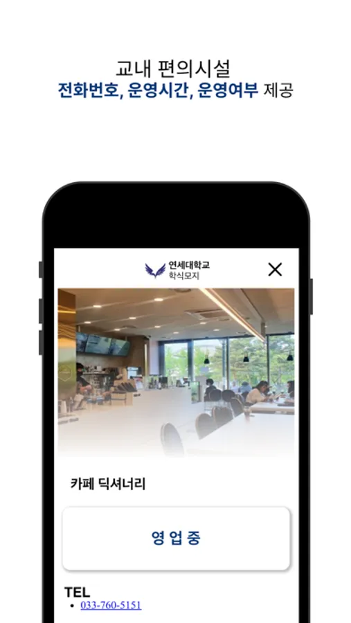- 편의시설 운영시간 및 전화번호, 운영여부 제공