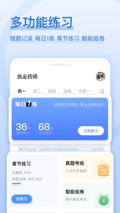 执业药师好题库,专注执业中药师、执业西药师考试考题研究与押题练习,10余年建筑工程资格考试研究经验,8年+课题研究经验。为广大考生提供全面化、科学化、个性化的练习好工具!