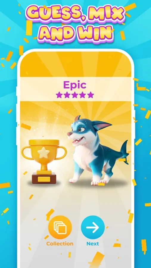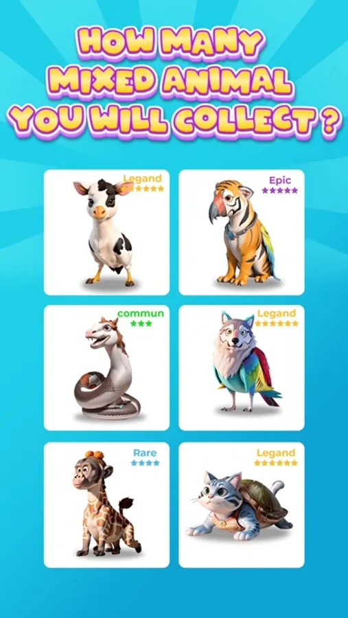 Collection: Correct guesses bring rewards! Collect the mixed-up animal and collect cool prizes - find common, rare, epic, and legendary animals.
