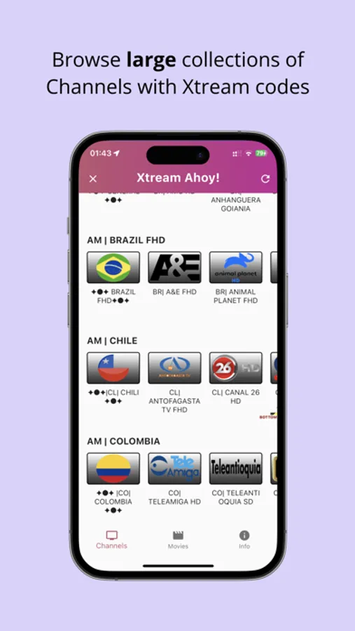 Xtream Ahoy! allows you to browse your playlist of IPTV channels and movies via Xtream codes. Browse the contents of your favorite playlists, discover channels and movies right at your fingertips. Unlock the power to access your favorite live TV channels and movies effortlessly and in style.