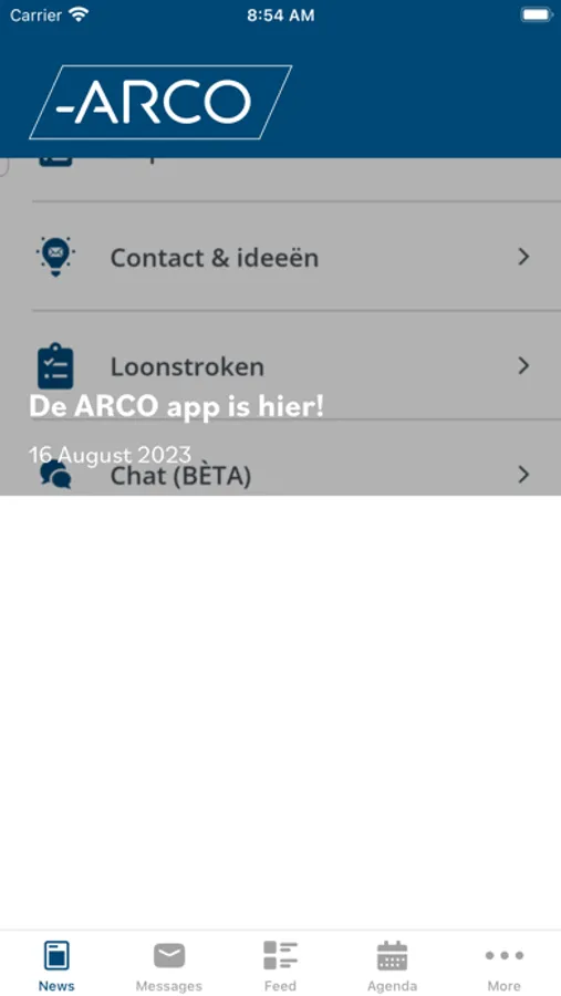 Welkom in de ARCO app! Hier staat alle informatie die je als medewerker nodig hebt. Je vindt hier je loonstroken, het personeelshandboek, het smoelenboek, nieuwsberichten. Je kunt hier verlof en nieuwe bedrijfskleding aanvragen of stel een vraag aan je collega’s.