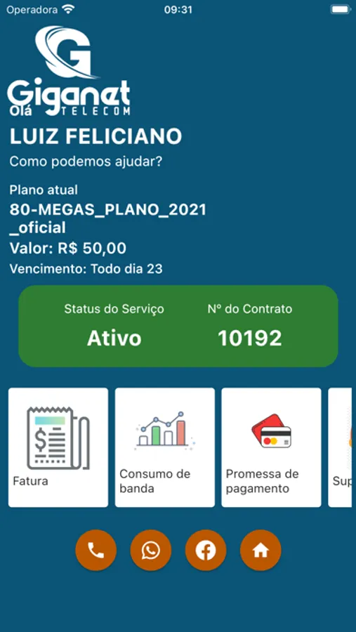 No app da Central do Assinante da REDE GIGANET TELECOM você pode: