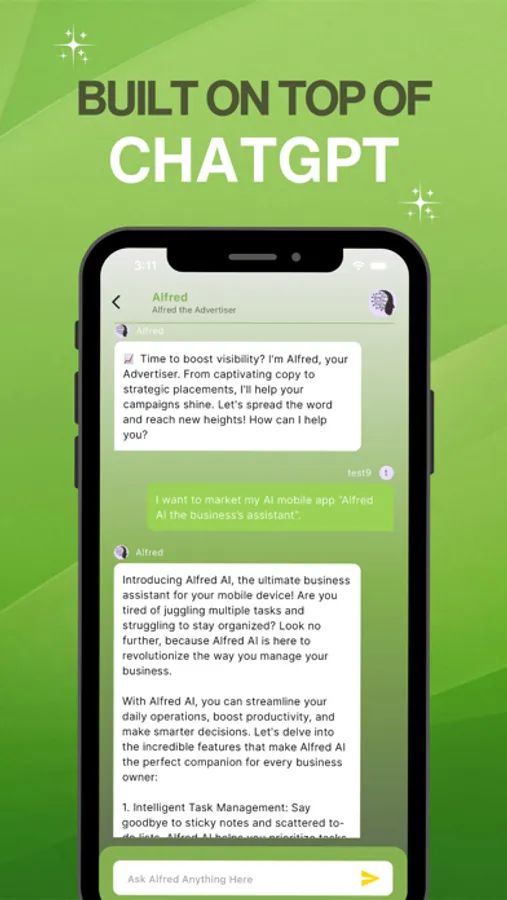 - Expert Chat Bots: From E-Commerce to Social Media Management – tap into Alfred’s AI expertise spanning the entrepreneurial spectrum.