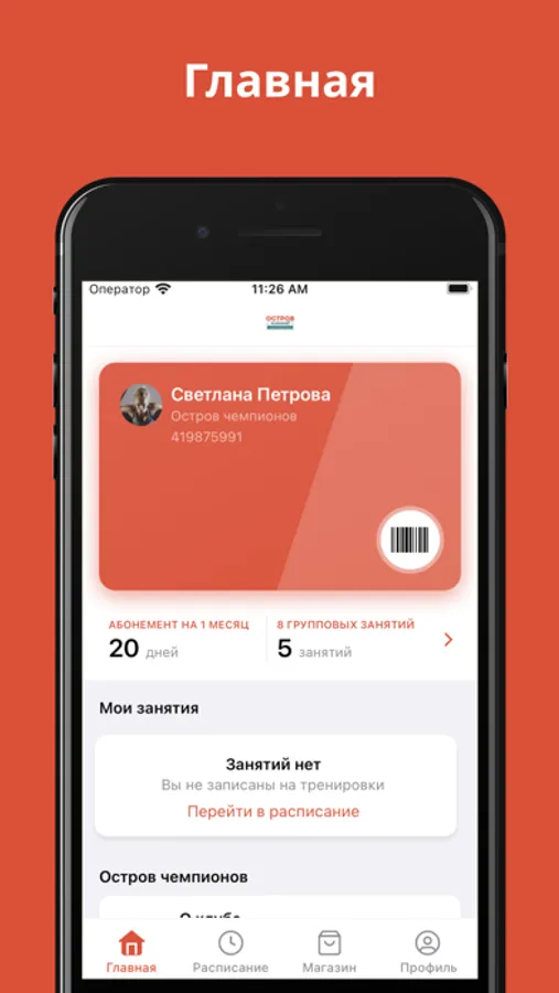 Приложение для клиентов спортивного клуба «Остров чемпионов»