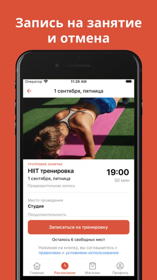 Онлайн запись на групповые и индивидуальные занятия в студии фитнеса. Личный кабинет клиента, возможность самому записываться на занятия и оплачивать абонемент в любое время в приложении.