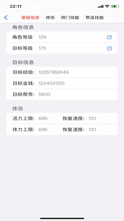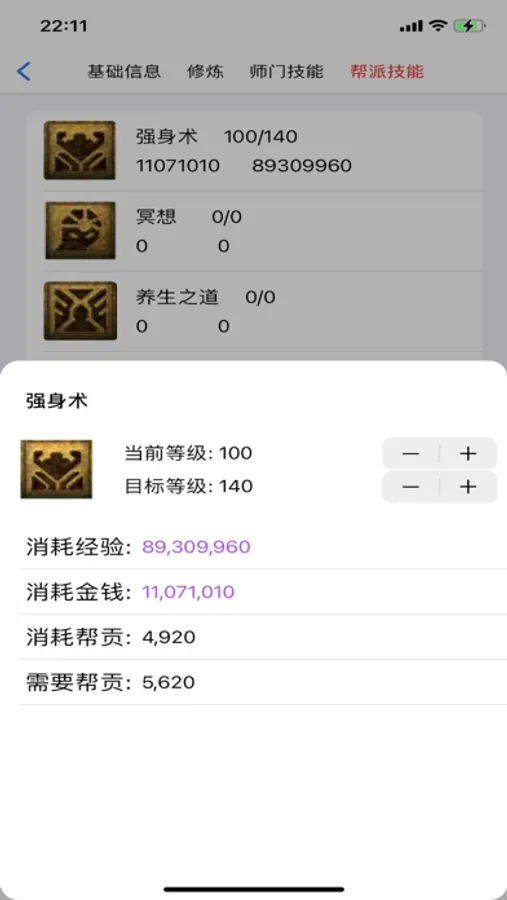 1. 养号工具, 可以统计升级到目标底子需要的经验值, 金钱和帮贡等数据.