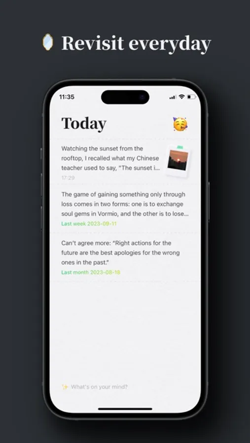 Every day, it presents you with entries from the same date in the past week, month, or year, offering a nostalgic journey through time.