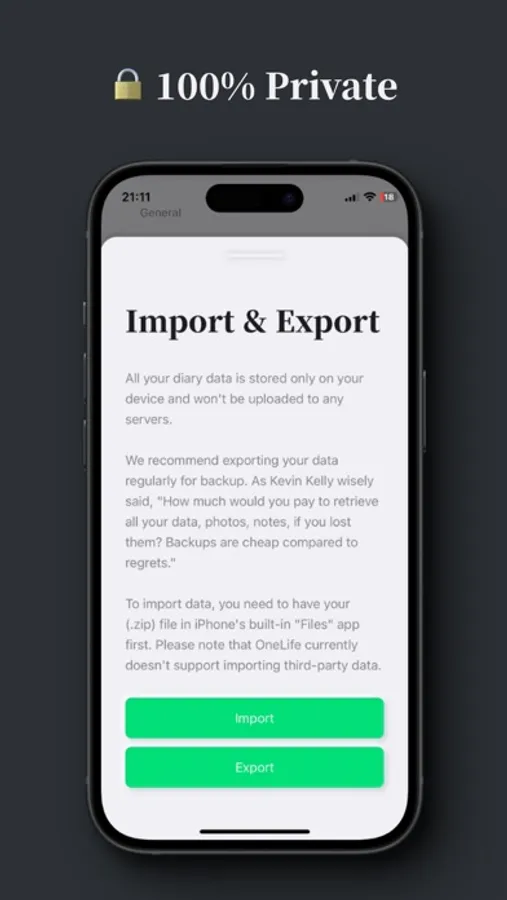 Your privacy is our priority. All your diary data is stored on your device and never uploaded to any server. However, you can sync all data to your iCloud account for safekeeping.