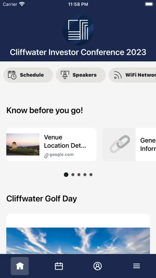 The Cliffwater app will keep you up-to-date on all Cliffwater events. You can find details such as agendas, conference speakers, activities, etc if you download now.
