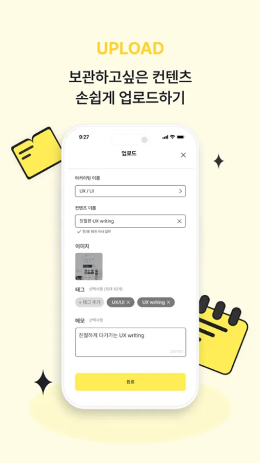보관하고 싶은 컨텐츠들을(링크, 이미지) 간단하고 손쉽게 업로드할 수 있어요.