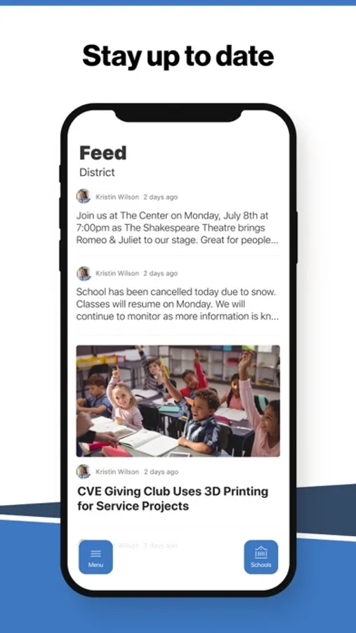 In the Live Feed is where you'll find updates from the administration about what's going on in the district right now. Whether that's celebrating a student's success, or reminding you about an upcoming deadline.