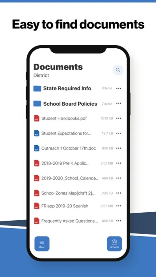 The event section shows a list of events throughout the district. Users can add an event to their calendar to share the event with friends and family with one tap.