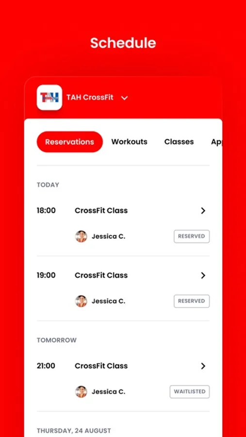 For members of TAH CrossFit to reserve their place in a class, sign up for gym events, and general account management like updating headshots and credit card on file.