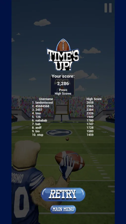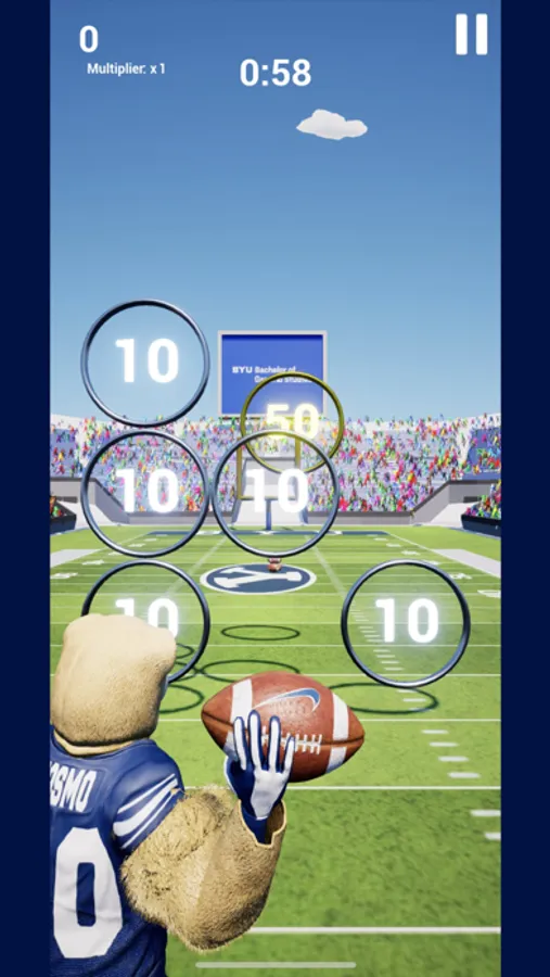 Support your team and have fun in this football challenge! You will play as Cosmo, competing against other BYU fans to try to get to the top of the leaderboard! Will you rise to Cosmo's Challenge?