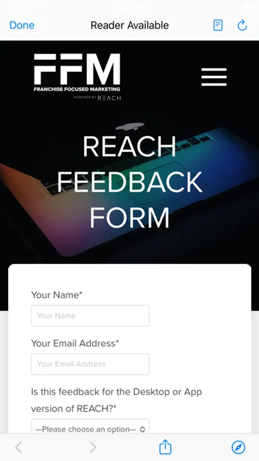 REACH To Go provides clients of Franchise Focused Marketing quick mobile access to their REACH dashboard. Access full campaign metrics, notes and leads on the go when you can't be in front of your computer.