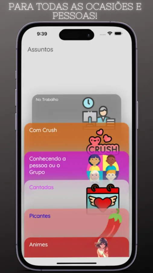 Navegue por temas que variam de cultura a curiosidades, aproveitando a liberdade de favoritar seus tópicos favoritos. Transforme qualquer ocasião em uma oportunidade de criar conexões autênticas e duradouras.