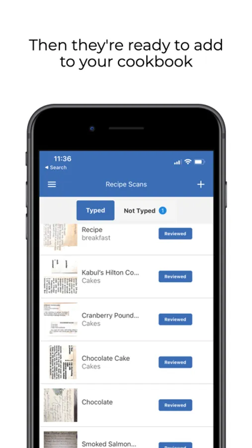 Scan handwritten recipes to be typed by CreateMyCookbook's WeTypeIt service on your iPhone or iPad. Requires account at CreateMyCookbook.